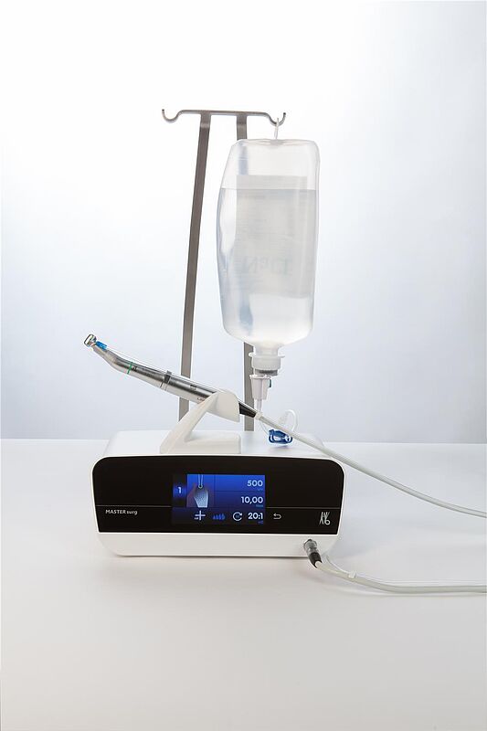 - hohe Patientensicherheit und Gerätezuverlässigkeit durch Anzeige des max. aufgetretenen Drehmomentes, konstantes Drehmoment dank SMARTdrive, thermodesinfizierbaren sowie sterilisierbaren Motor und Motorleitung, zerlegbaren und einfach zu reinigenden Fußanlasser sowie vollständig desinfizierbare Geräteoberflächen.